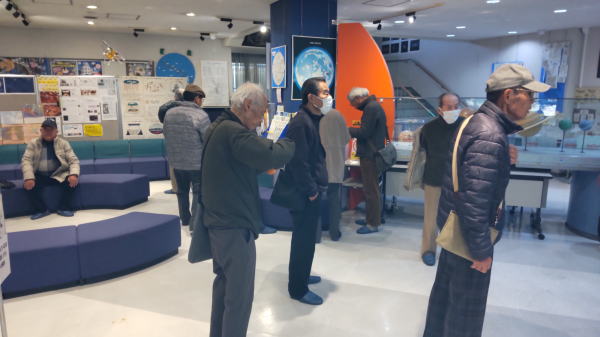 入館して無料の展示室でプラネタリウム鑑賞の手続き中です。