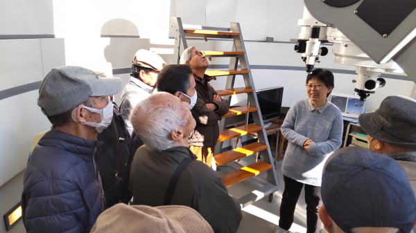 急な階段を上がって天体観測室に入り、「男の居場所の会さんは以前にも来られましたね。」という職員さんに、天文台の説明をじっくりとしていただきました
